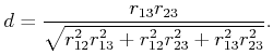 $\displaystyle d = {r_{13} r_{23} \over \sqrt{r_{12}^2 r_{13}^2 + r_{12}^2 r_{23}^2 + r_{13}^2 r_{23}^2}}.$ (4.30)