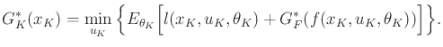 ![$\displaystyle G^*_K(x_K) = \min_{u_K} \Big\{ E_{\theta_K} \Big[ l(x_K,u_K,\theta_K) + l_F(x_F) \Big] \Big\},$](img4060.gif) |